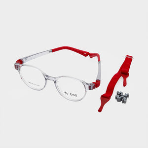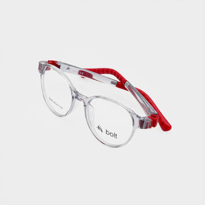 The Bolt Juniors 76806 in Transparent Red is a lightweight and durable eyeglass frame designed for all-day comfort. Perfect for kids who need both strength and style in their everyday eyewear.